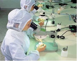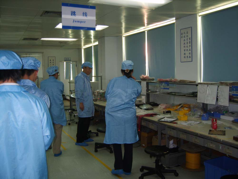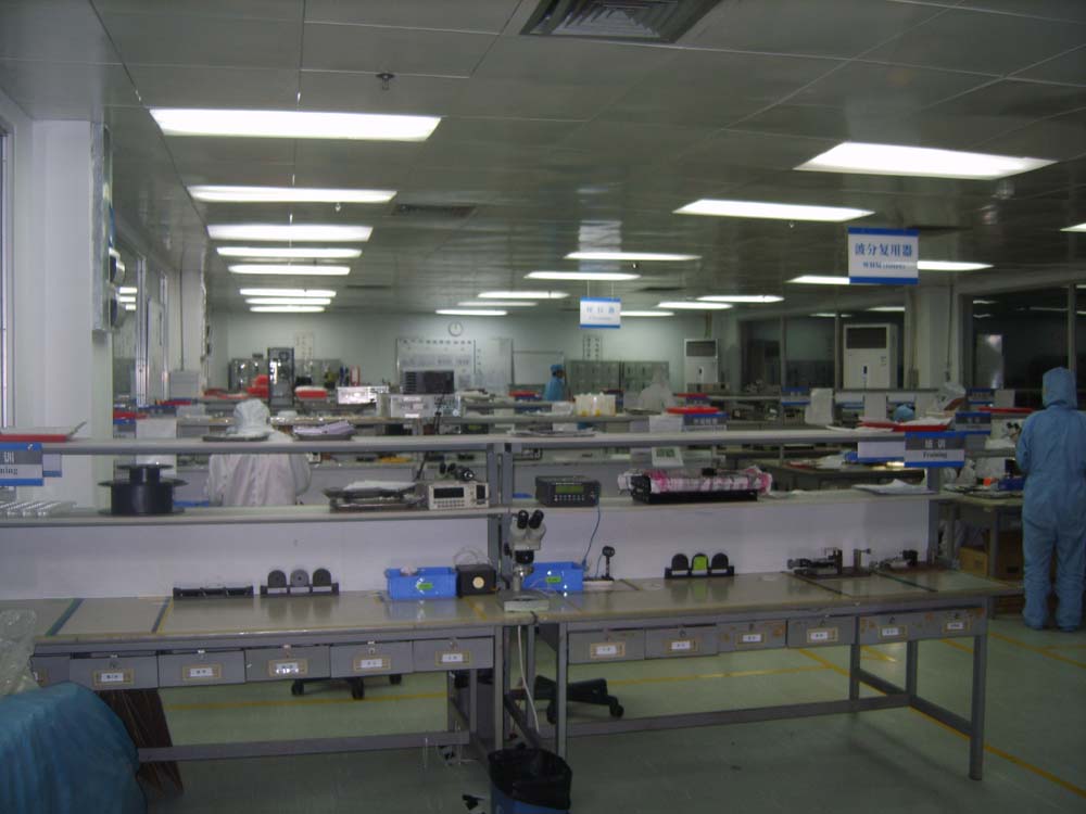 | 在座談中,雖然已經(jīng)到了午休時間,我們還是跟隨楊總去了公司生產(chǎn)線參觀。公司總體面積2300平方米,其中廠房2000平方米。在進入廠房后,我們發(fā)現(xiàn)有一個凈化生產(chǎn)間,據(jù)介紹這是一個擁有700平方米10000級的凈化生產(chǎn)車間(100級40平米),主要用來生產(chǎn)需要干凈生產(chǎn)環(huán)境的隔離器等產(chǎn)品。在廠房中,遠遠就看到廠房中間懸掛的產(chǎn)品牌子,這是每個具體產(chǎn)品具體的生產(chǎn)線。其中我們看到的有波分復用器(WDM)、密集波分復用器(DWDM)、光隔離器(Isolator)、單多模耦合器 (coupler)、光環(huán)形器(Circulator)、偏振光合束器(PBC)、單/雙纖準直器(Collimator)、 固定衰減器(Attenuator)等等。據(jù)楊總介紹目前公司生產(chǎn)的無源器件產(chǎn)品類型比較齊全,從簡單到復雜的都有,尤其是所有保偏系列器件及各類活動連接器和各種跳線產(chǎn)品都能做。“滿足客戶需求是我們的服務理念”楊總說。公司不僅在器件種類齊全方面具有優(yōu)勢,而且在客戶服務方面也有一套快速反應系統(tǒng),力求在兩天里發(fā)貨的規(guī)定,同時對于大客戶公司都會為其準備一定的庫存,保證存貨充足,按時發(fā)貨。公司在研發(fā)技術方面也具有優(yōu)勢,因為公司與美國先進的光纖通訊研發(fā)機構進行合作,對方有最先進的設備儀器,( AC Photonics Inc.和Agiltron Inc.) 可根據(jù)市場的需要研制最新最有競爭力的產(chǎn)品。 | |||