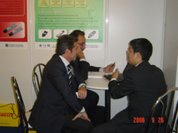 恒寶通展臺前工作人員合影                          彭總在展館外