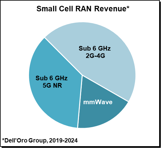 Sub 6GHz Small Cell(包括CBRS)預(yù)計(jì)將占Small Cell市場(chǎng)的80%以上,這反映出運(yùn)營(yíng)商需要用室內(nèi)Small Cell來(lái)補(bǔ)充戶(hù)外中頻基站,以?xún)?yōu)化組合體驗(yàn)。