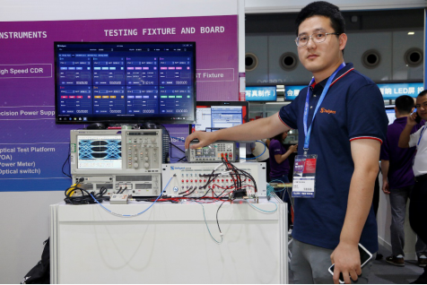 隨著光模塊市場的競爭越來越激烈,高速光器件(N*25G)的封裝能力直接決定了光模塊供應(yīng)商在市場上的競爭實力,而針對高速光器件的射頻性能測試,一直是一個難題。上海乘訊本次展出的N*25G TOSA/ROSA光器件測試方案,是其協(xié)同國內(nèi)外器件封裝的客戶,通過將近一年的不斷摸索,成功開發(fā)出來的。該測試系統(tǒng)通過其自主開發(fā)的帶溫控的光器件測試機臺,配合超低抖動的高性能誤碼儀以及集成的光一體機,可以實現(xiàn)器件級別的高低溫(0C-85C)的眼圖、靈敏度等性能測試,極大的提高了光器件的測試精度和效率,已經(jīng)在國內(nèi)外知名的光器件廠商成功應(yīng)用。