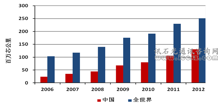 全球和中國的光纖需求量