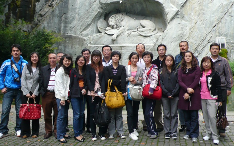 瑞士獅子紀念碑前訊石全團人員合影留念
