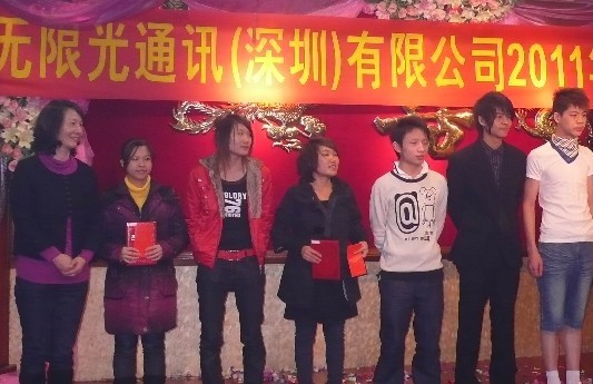 2011年1月15日晚消息,無(wú)限光通訊(深圳)有限公司(ADF)2011新春晚宴在深圳市寶安區(qū)榕江漁村隆重舉行。此次晚宴參會(huì)主體人員為無(wú)限光公司的全體員工,也邀請(qǐng)了包括深圳澤萬(wàn)豐,泰科微,恒寶通,飛普科技,易飛揚(yáng),中葛科技,深圳億源通,深圳麥通,北京國(guó)瑞升等眾多光通訊企業(yè)客戶。訊石很榮幸應(yīng)邀參加此次年會(huì)。