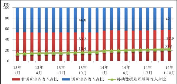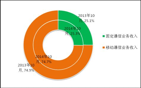 圖9 2014年10月電信主營業(yè)務(wù)收入構(gòu)成(固定和移動)