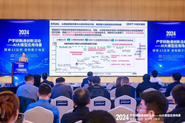 ICC訊 9月27日,以“探索AI邊界重構(gòu)數(shù)字場景”為主題2024產(chǎn)學(xué)研融通創(chuàng)新活動在北京正式召開,26位演講嘉賓齊聚,共話生成式人工智能的關(guān)鍵技術(shù)與應(yīng)用趨勢,共探AI大模型在7大領(lǐng)域的應(yīng)用落地。中國信通院人工智能研究所軟硬件與生態(tài)部主任李論發(fā)表了《大模型應(yīng)用落地趨勢與路徑》主題演講,在詳述大模型的范式變遷與模型演進(jìn)的同時,強(qiáng)調(diào)了底座支撐作用。她指出,模型的原始創(chuàng)新與大模型訓(xùn)推系統(tǒng)深度耦合,大模型落地時,計算能力決定了大模型性能天花板。