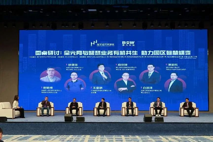 POL(F5G)全光網(wǎng)絡之所以將登上主舞臺,成為主流趨勢,主要原因之一是它強大的鏈接和承載能力,與智慧業(yè)務和產(chǎn)業(yè)發(fā)展深度融合、有機共生,這種共生關系不僅提高了園區(qū)的運營效率和管理水平,也推動了園區(qū)的可持續(xù)創(chuàng)新發(fā)展和智慧蝶變。在圓桌論壇環(huán)節(jié),安邦護衛(wèi)集團股份有限公司安防研究院技術總監(jiān)郎敏峰、南京耘瞳科技有限公司副總經(jīng)理徐健華、杭州橙芯數(shù)鏈科技有限公司總經(jīng)理王星穎、杭州哲達科技股份有限公司副總裁、浙江省能效專家麻劍鋒、杭州吉網(wǎng)通信技術有限公司聯(lián)合創(chuàng)始人白潤澤、博為科技有限公司企業(yè)網(wǎng)產(chǎn)品線總經(jīng)理譚亞科從安全、業(yè)務布局、節(jié)能、施工建設等方面就POL(F5G)全光網(wǎng)是如何賦能園區(qū)智慧業(yè)務落地這一主題進行了深入探討。