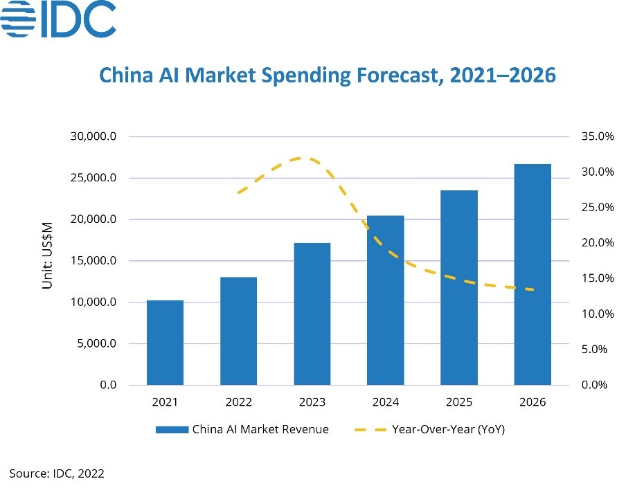 ICC訊 IDC的最新數(shù)據(jù)顯示,2021年全球人工智能IT投資總額為929.5億美元,預(yù)計2026年將增至3014.3億美元,復(fù)合年增長率(CAGR)約為26.5%。IDC預(yù)測,2026年中國人工智能投資預(yù)計將達(dá)到266.9億美元,約占全球投資的8.9%,在全球排名第二。