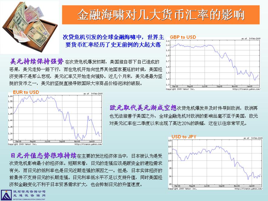 分析人士認(rèn)為,在金融危機(jī)未有好轉(zhuǎn)之時(shí),美元在一定時(shí)限內(nèi)將繼續(xù)保持強(qiáng)勢(shì)上揚(yáng)的趨勢(shì)。中國(guó)社科院世經(jīng)所張明博士認(rèn)為,盡管從長(zhǎng)期來(lái)看,在美國(guó)財(cái)政赤字暴增的趨勢(shì)下,美元有大幅貶值的可能,但金融危機(jī)的不斷蔓延,往往令投資者會(huì)尋求流動(dòng)性好的美元資產(chǎn)實(shí)現(xiàn)資產(chǎn)保值,帶動(dòng)市場(chǎng)不斷買(mǎi)入美元,導(dǎo)致近期以來(lái)美元持續(xù)上揚(yáng)和非美貨幣的走軟甚至是暴跌。