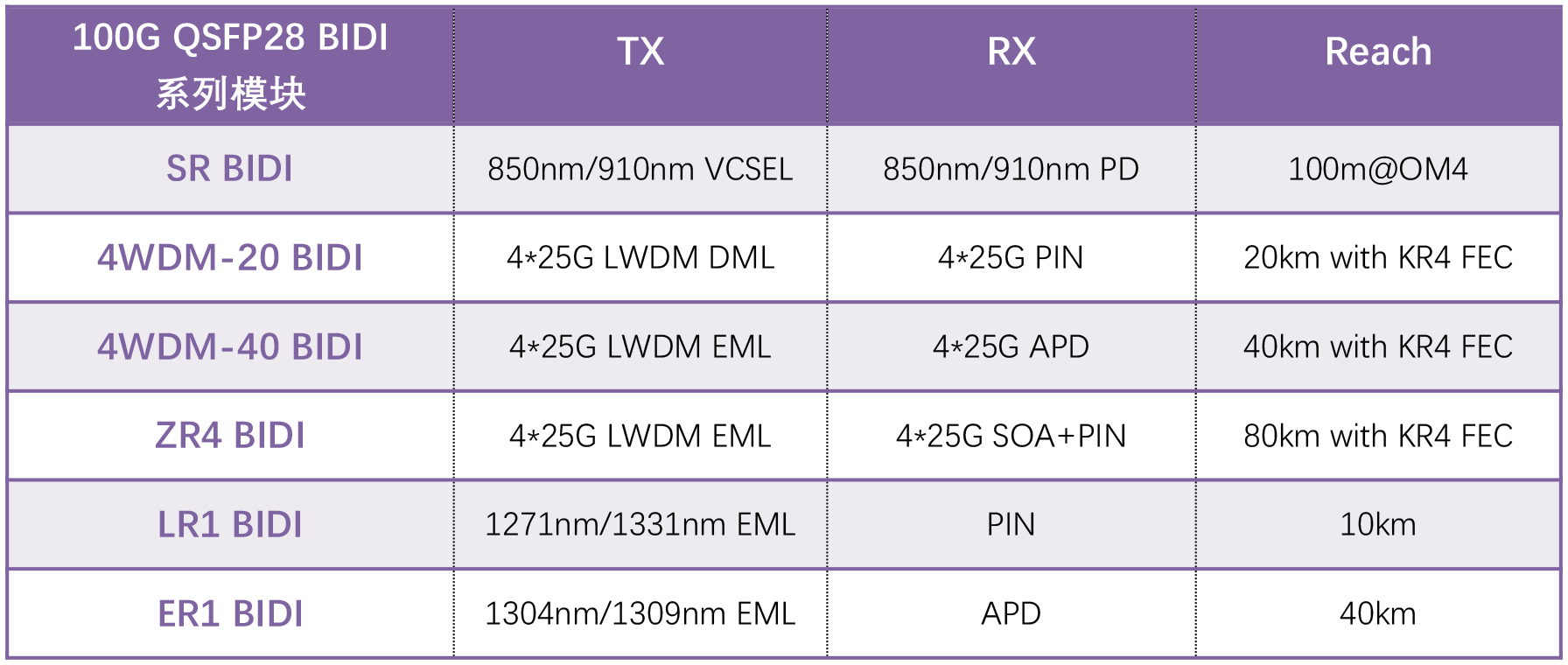 光迅科技100G QSFP28 BIDI系列光模塊產(chǎn)品