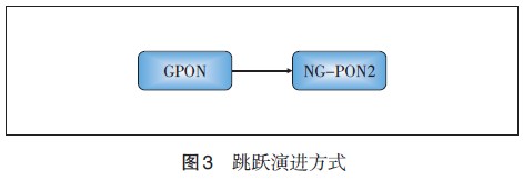 b) 跳躍演進(jìn)方式(見圖3)。從GPON直接演進(jìn)到NG-PON2。根據(jù)業(yè)務(wù)和網(wǎng)絡(luò)的發(fā)展進(jìn)程,該方式跳過XG-PON階段,直接從GPON升級(jí)為NG-PON2,因此要求在ODN中GPON與NG-PON2 2個(gè)系統(tǒng)共存。