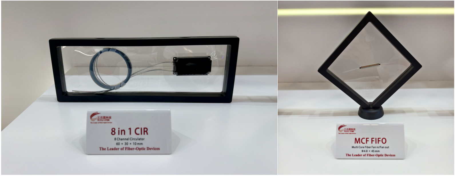 本屆ECOC 2025,三石園科技除核心OCS系統(tǒng)外,三石園科技還同步展示了與OCS高度協(xié)同的8合1環(huán)形器,以及面向數(shù)據(jù)中心高密度互聯(lián)的MCF FIFO 等新品,形成從核心交換到終端連接的完整解決方案。