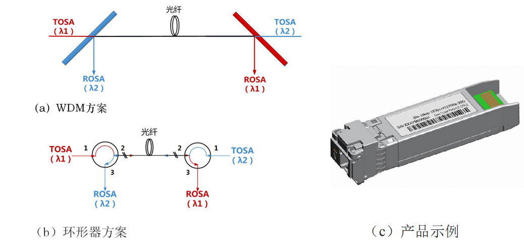 100/200Gb/s BiDi 10km光模塊的技術(shù)方案正處于研究階段,典型實(shí)現(xiàn)方式包括環(huán)形器和WDM兩種,功能框圖如圖8所示。