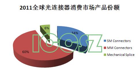 2011年,與多模光纖配套使用的光纖連接器占據全球光纖連接器消費市場的60%;其次是單模光纖連接器,占比為34%;最后機械接續(xù)頭占6%。機械接續(xù)頭消費市場預計也將繼續(xù)增長。適用于光纖到戶安裝,基于機械拼接技術的現(xiàn)場安裝連接器應用急劇增長。
