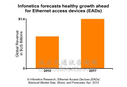 【訊石光通訊咨詢網(wǎng)】Infonetics研究近期發(fā)布了最新的以太網(wǎng)接入設(shè)備(Ethernet Access Device,EAD)市場(chǎng)報(bào)告。報(bào)告數(shù)據(jù)顯示,2012年全年,全球EAD市場(chǎng)增長(zhǎng)3.5%至8.6億美元。該市場(chǎng)銷(xiāo)售收入增長(zhǎng)放緩一方面是由于經(jīng)濟(jì)條件,另一方面則是由于2012年下半年運(yùn)營(yíng)商開(kāi)支放緩。
