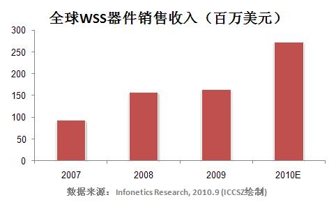 *預(yù)計到2012年,來自50GHz通道的WSS器件產(chǎn)品收入將占整個WSS市場收入一半以上。