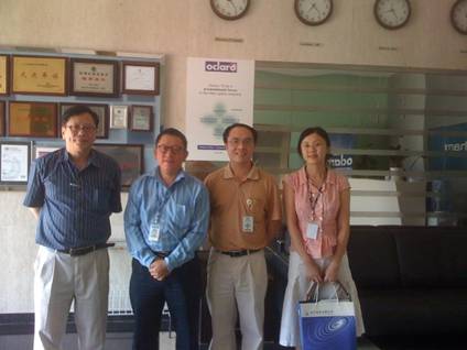 訊石石總(左一)與Oclaro執(zhí)行董事林總(左二)和副總經(jīng)理鄭總(左三)合影