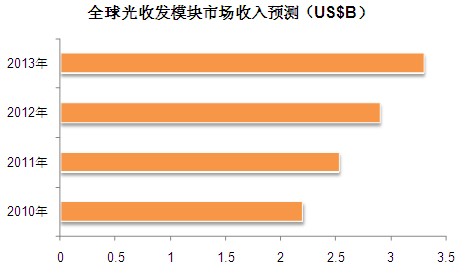 【訊石光通訊咨詢網(wǎng)編譯】LightCounting最新市場報告預(yù)計,2010年全球光收發(fā)器市場銷售額將達(dá)22億美元,該市場2009年至2013年間年復(fù)合增長率為15%,主要受寬帶市場日益增長的影響。
