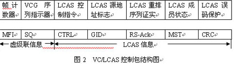 虛級聯(lián)VCAT和LCAS功能的實現(xiàn)都是通過同一個字節(jié)完成的。在VC-3/VC-4中采用H4字節(jié);由其構(gòu)成2個重復(fù)幀,第一個重復(fù)幀由16幀組成,第二個重復(fù)幀的長度為256幀。要完成一組VC控制信息的傳輸至少需要16幀,即2ms的時間。一個VCG最多由256個VC組成。