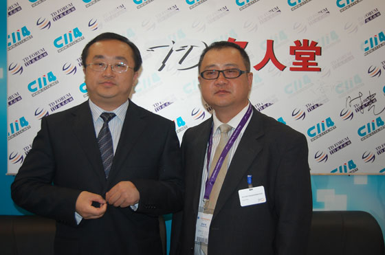 TD技術(shù)論壇秘書(shū)長(zhǎng)時(shí)光(左)和諾基亞西門(mén)子大中國(guó)區(qū)副總裁潘波(右)