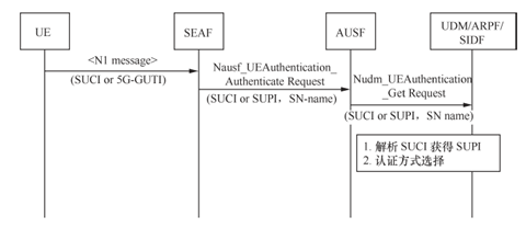 在UDM 處理請求之前,SIDF 應解除SUCI 以獲得SUPI?;赟UPI,UDM/ARPF 應根據(jù)訂閱數(shù)據(jù)選擇認證方法。