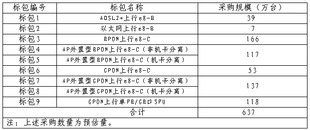 而去年2月份中國(guó)電信啟動(dòng)寬帶終端設(shè)備集采,共分9個(gè)標(biāo)包,總規(guī)模達(dá)1213萬(wàn)臺(tái)。