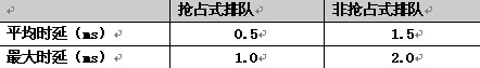 在ONU中使用非搶占式排隊的傳輸機制,會減輕低級業(yè)務(wù)延遲大的局面。但是將會帶來新的問題。在這樣傳輸機制中,OUN會根據(jù)預(yù)先上報的請求的隊列,依次進行數(shù)據(jù)的傳遞。即便是有更高級別的業(yè)務(wù)需要傳遞,ONU也不會響應(yīng)。但是這樣做一個缺點就是由于新的業(yè)務(wù)的傳遞,都要等到上一個傳輸周期完成后,經(jīng)過本次ONU的請求以及OLT的響應(yīng)后才能進行。所以會增加數(shù)據(jù)排隊的時延。表2表明對于高優(yōu)先級的業(yè)務(wù)時延周期會有1ms。