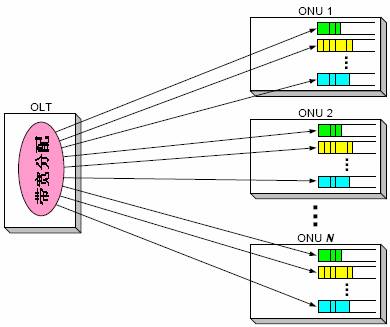 在這樣一個接入網(wǎng)中,每個ONU可能會有一個或者多個用戶,而每個用戶可能會有一種或者多種業(yè)務(wù)。而每個業(yè)務(wù)(如視頻、語音和數(shù)據(jù))可能會有不同的服務(wù)等級(CoS),對服務(wù)質(zhì)量(QoS)有不同的要求。