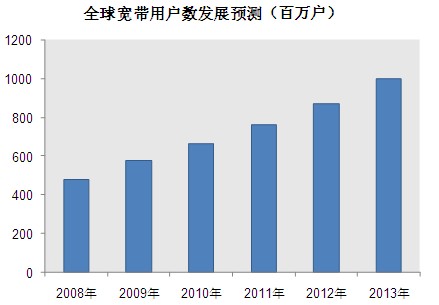 目前,消費(fèi)者對寬帶服務(wù)的熱情日益增長,2009年,全球平均每月有880萬新簽約寬帶用戶,到2013年,全球?qū)拵в脩魯?shù)量將超過10億。根據(jù)In-Stat最新報告數(shù)據(jù)顯示。