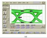 SOA-MZI是通過InP材料裝配在一起的,為了實現(xiàn)對偏振不敏感的XPM,這些SOA的有源材料要由混合應變量子阱或應變大塊材料(bulk material)任一組成,為的是平衡TE和TM光增益。材料在非平面表面的再生長來用于實現(xiàn)SOA和無源光波導之間的平滑轉變。在SOA-MZI設計方案中,一個需要考慮的重要事項是要對SOA-MZI芯片中的發(fā)射激光(lasing)進行有效抑制。為了支持2R再生器所需的功率預算,可能會將3個SOA級聯(lián)在一起。任何來自刻面的反射都可能導致內部的lasing,這些lasing會抑制SOA-MZI內部的XPM效應。要解決這個問題就需要在InP刻面采用有角度波導,并鍍上一層防放射膜,可以將總的發(fā)射率降低到-50dB以下。而XPM所支持的數(shù)據(jù)速率也受到SOA載波恢復時間的限制。圖3顯示了兩種不同結構的SOA-MZI在對10Gbps速率信號處理完的輸出眼圖。在圖3a中,緩慢的載波恢復的影響呈現(xiàn)在脈沖下降時間上。在圖3b中,通過在干涉儀中使用更長的SOA則減輕了這種影響,加上的SOA在對有源區(qū)的折射率進行相同改變后會產生了更大的相位位移。而干涉臂上的SOA所產生的自飽和效應也會限制所有處理信號的速率。然而,如果SOA -MZI兩個輸入臂上的固定時間延遲等于脈沖寬度的話,那可處理信號的速率將可以很高,我們已經看到人們對40Gbps數(shù)據(jù)進行再生處理的報道了[7]。