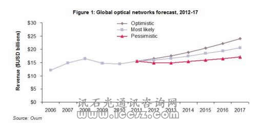 【訊石光通訊咨詢(xún)網(wǎng)】Ovum預(yù)測(cè),由于數(shù)據(jù)中心日益增長(zhǎng)的帶寬需求,長(zhǎng)期來(lái)看光網(wǎng)絡(luò)硬件市場(chǎng)前景光明。2012到2017年間,光網(wǎng)絡(luò)系統(tǒng)銷(xiāo)售額將以5%的CAGR(年均復(fù)合增長(zhǎng)率)增長(zhǎng),達(dá)200億美元。