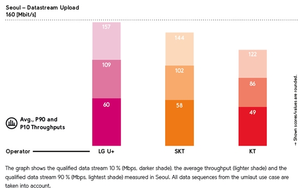 報(bào)告顯示,在下行速率和上行速率方面,LG U+都實(shí)現(xiàn)了全面領(lǐng)先。