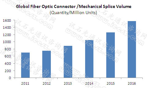 昨日消息,據(jù)ElectroniCast最新數(shù)據(jù),2011年全球光纖連接器和接續(xù)子消費量達到7.03億套;到2016年,全球消費量將增倍,超過15.7億套。2012年光纖連接器在美洲,EMEA地區(qū)(歐洲,中東和非洲地區(qū))消費量不佳,但在2013年以后將復(fù)蘇。