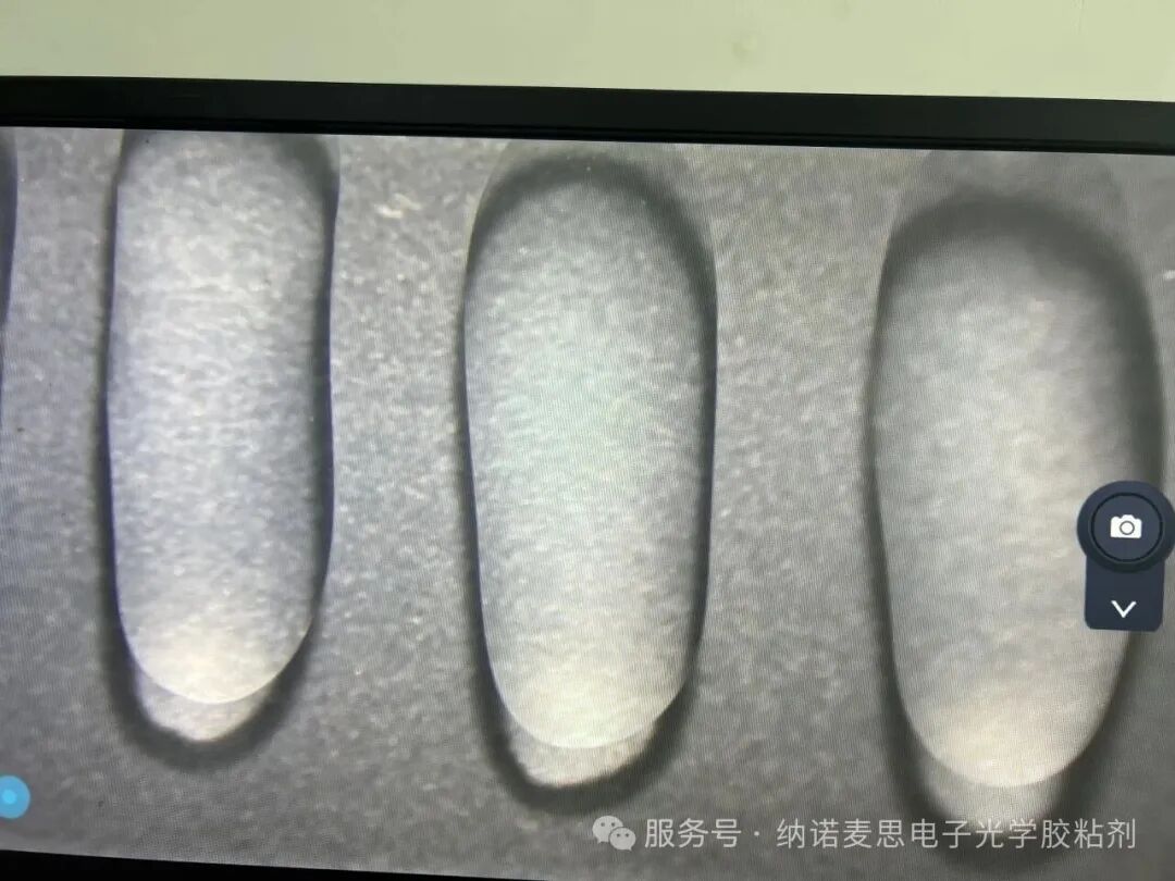 而納諾麥思UV1208型尾膠,在研發(fā)初期就通過配方和固化條件的設計,使其具有快速表干的特性,不存在氧阻聚現(xiàn)象。而且這款膠水已經(jīng)批量供貨,從來沒有收到過“吸附異物”的反饋。這點,我們是有信心的。