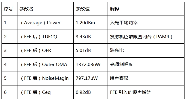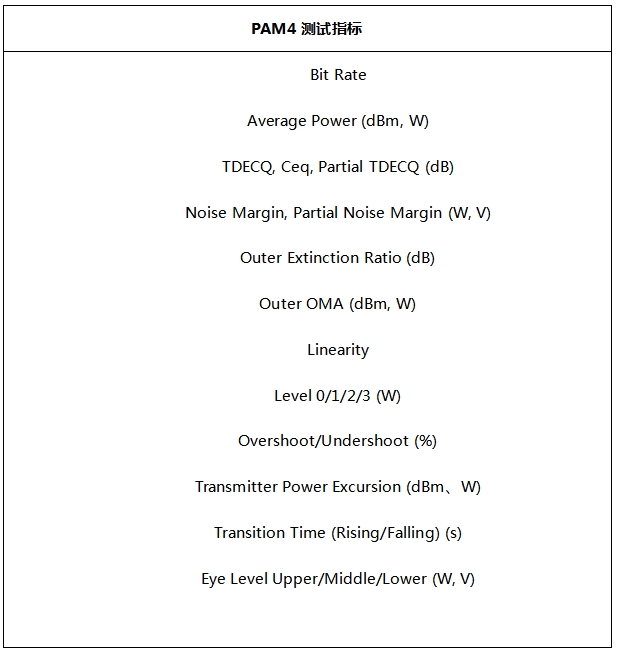 在PAM4測試中,可根據(jù)協(xié)議要求使用PRBS碼型或者SSPRQ碼型,最值得關(guān)注的幾個指標(biāo)包括TDECQ(Transmitter and Dispersion Eye Closure Quaternary)、OER(Outer Extinction Ratio)、Outer OMA等。下面詳細介紹一下這幾個指標(biāo)。