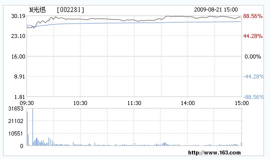 【光通訊咨詢網(wǎng)】國(guó)內(nèi)通信光電子器件制造的龍頭企業(yè)武漢光迅科技股份有限公司(簡(jiǎn)稱"光迅科技")股票上市掛牌儀式今日在深圳證券交易大廳隆重舉辦。光迅科技發(fā)行價(jià)格16元/股,發(fā)行數(shù)量4000萬(wàn)股,今日上市3200萬(wàn)股,發(fā)行市盈率35.4倍。今日股票開(kāi)盤價(jià)27元,收于29.79元,換手率84.86%,全日漲86.19%。公司的主要產(chǎn)品包括光纖放大器、波分復(fù)用器、光集成器件等。