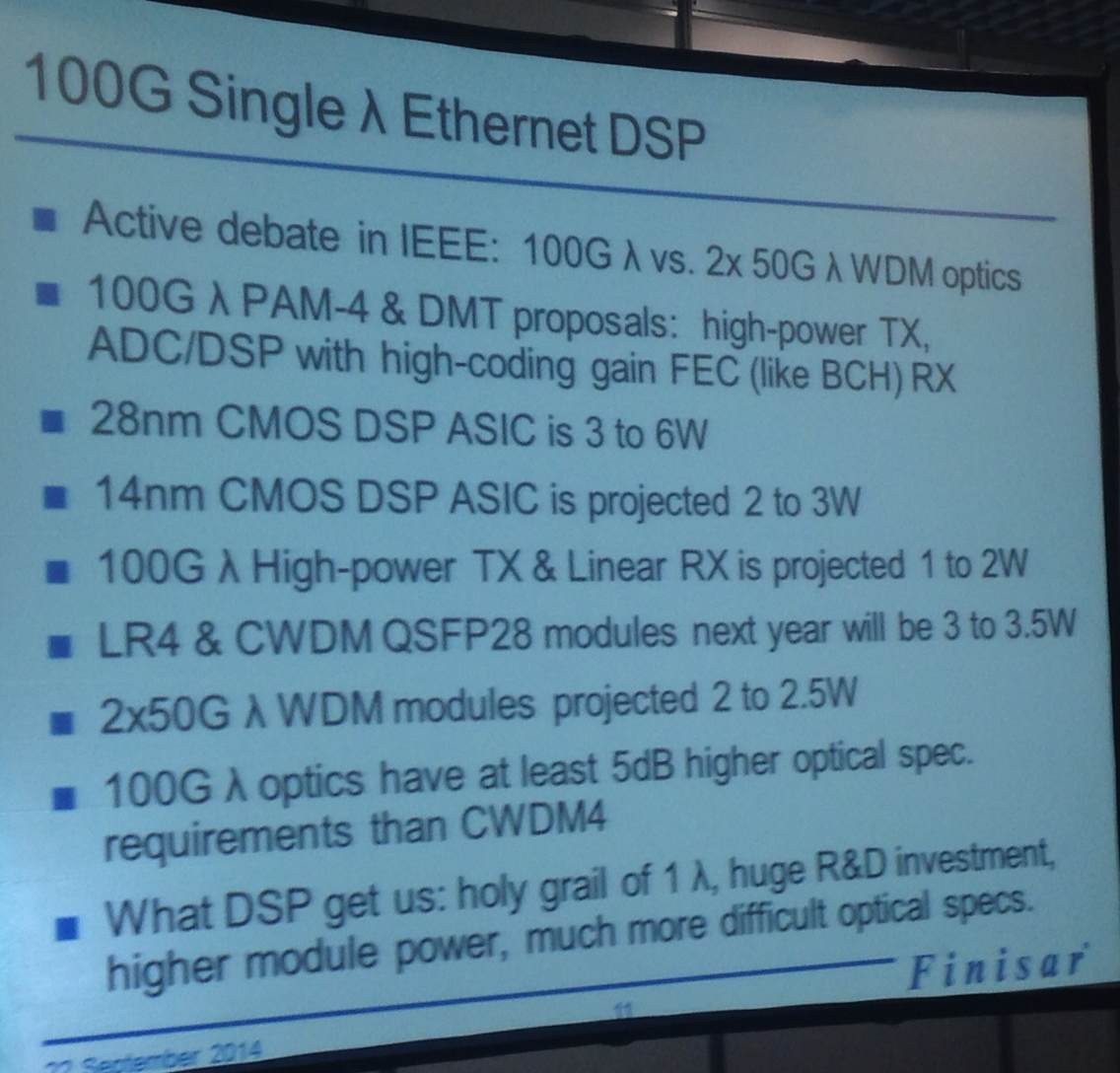 Source的100G QSFP28第一次展出是在今年3月的OFC上,是行業(yè)第一個(gè)QSFP28模塊支持100G-LR4標(biāo)準(zhǔn)的。其特點(diǎn)是功耗低達(dá)3.5W,并支持10km單模光纖傳輸,QSFP28模塊在數(shù)據(jù)中心及運(yùn)營(yíng)傳輸設(shè)備中具有高密度及低延時(shí)性。此外,不僅是LR4外表的封裝,Source還提供一款“LR4-Lite”版本的QSFP28,且降低預(yù)算和功耗的。