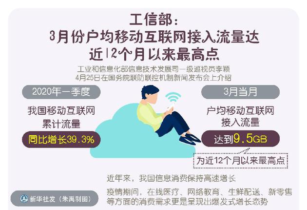 ICC訊 今年一季度,我國(guó)移動(dòng)互聯(lián)網(wǎng)累計(jì)流量同比增長(zhǎng)39.3%,3月當(dāng)月戶均移動(dòng)互聯(lián)網(wǎng)接入流量達(dá)到9.5GB,為近12個(gè)月以來最高點(diǎn)。