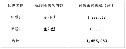 本次中國移動通信有限公司2015年CPE集中采購的產(chǎn)品分為CPE室內(nèi)型、CPE室外型兩種產(chǎn)品。本次比選共分2個標(biāo)段,每種產(chǎn)品1個標(biāo)段。具體標(biāo)段1室內(nèi)型128.9萬臺、標(biāo)段2室外型16.67萬臺,總計145.6萬臺,具體如下圖。