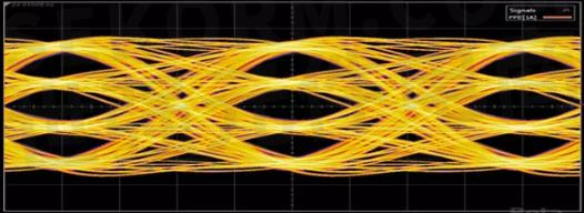 在400G光模塊測試中,更高速的傳輸速率、更復雜的評判標準、更緊迫的上市時間、更苛刻的功耗要求、更低成本的訴求,層層挑戰(zhàn)接踵而至。上圖為64GBd PAM4信號疊加形成。400G PAM4重重疊疊的眼圖,想要睜大這三只眼清晰看世界并不容易。