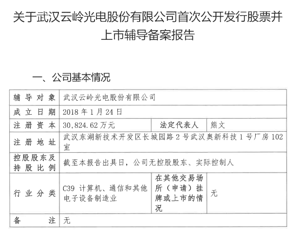 ICC訊 10月10日,證監(jiān)會披露了關(guān)于武漢云嶺光電股份有限公司(簡稱“云嶺光電”)首次公開發(fā)行股票并上市輔導備案報告。9月21日,云嶺光電與海通證券簽署了上市輔導協(xié)議,計劃在2023年至2024年2月進行上市前輔導工作。