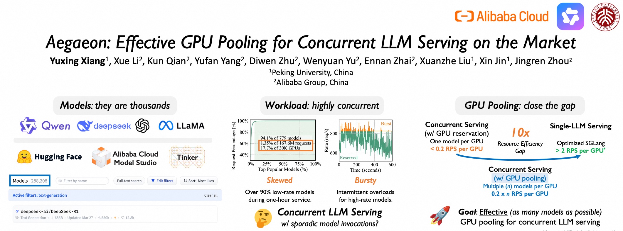 ICC訊 近日,頂級學術(shù)會議SOSP2025在韓國首爾舉行,本屆會議僅收錄66篇論文,其中阿里云提出的GPU池化服務多模型研究成果成功入選,該研究提出多模型混合服務系統(tǒng)Aegaeon,可大幅提升GPU資源利用率,目前其核心技術(shù)已應用在阿里云百煉平臺。