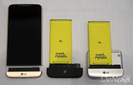 功能方面,G5加入了AllwaysonDisplay功能,就是當(dāng)鎖屏?xí)r,手機(jī)大幅調(diào)低屏幕的亮度,但依然能為用戶正常顯示時(shí)間等信息,同時(shí),LGG5搭載了三個(gè)可替換的“下巴”,分別是原裝、B&O揚(yáng)聲器下巴以及卡片相機(jī)的下巴。這種可更換的“下巴”設(shè)計(jì)也讓可自由拆卸的2800mAh電池成為可能。