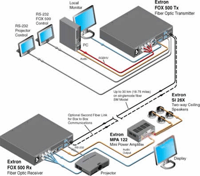 Extron FOX 500 Tx/Rx光纖延長(zhǎng)器包括發(fā)送器和接收器,用來(lái)通過單條光纜進(jìn)行遠(yuǎn)距離傳輸高分辨率RGB信號(hào)、音頻和RS232控制信號(hào)。它特別針對(duì)可靠性和優(yōu)異的高分辨率圖像質(zhì)量而設(shè)計(jì),采用Extron獨(dú)特的全數(shù)字零壓縮技術(shù),實(shí)現(xiàn)了完美的逐一像素的計(jì)算機(jī)視頻傳輸,最高分辨率可達(dá)UXGA(1600X1200)。特別針對(duì)視音頻系統(tǒng)而設(shè)計(jì)的FOX 500還包括了許多面向集成商的友好特性,例如圖像調(diào)整和校準(zhǔn),接收器的雙路RGB和音頻輸出,多位置RS-232控制、機(jī)架安裝能力以及實(shí)時(shí)系統(tǒng)監(jiān)控等。