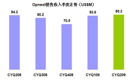 與上季度營(yíng)業(yè)收入8360萬(wàn)美元相比,Opnext公司本季度營(yíng)業(yè)收入增長(zhǎng)170萬(wàn)美元至8530萬(wàn)美元,環(huán)比增長(zhǎng)2%。與去年同期營(yíng)業(yè)收入8420萬(wàn)美元相比,營(yíng)業(yè)收入增長(zhǎng)110萬(wàn)美元,環(huán)比增長(zhǎng)約1.3%,其中包括于2009年1月9日收購(gòu)的StrataLight通信公司323萬(wàn)美元的營(yíng)業(yè)收入。