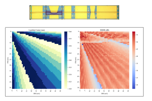 ITLA芯片:寬譜調(diào)諧+窄線寬,助力相干與WDM應(yīng)用 :采用100nm C+L波段寬譜增益材料以及MZI、SOA多段集成電注入方式實(shí)現(xiàn)了C與L波段>40nm范圍的波長(zhǎng)調(diào)諧,線寬低于100kHz,可支持高速相干、WDM等應(yīng)用需求。
