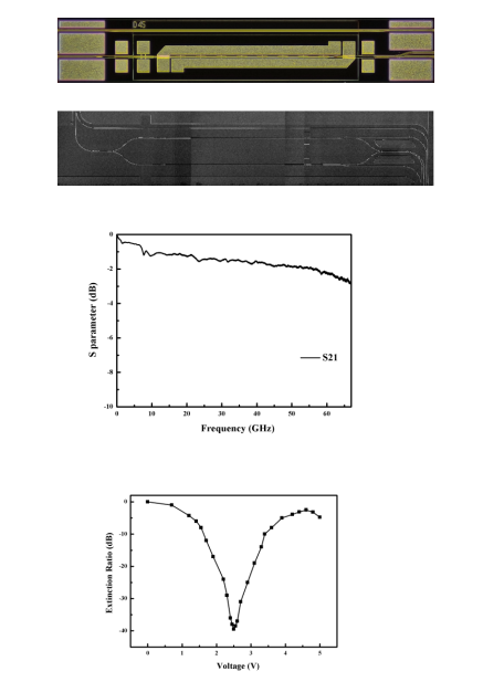 InP-MZM/IQ-MZI芯片:高電光帶寬+優(yōu)驅(qū)動(dòng)特性,強(qiáng)化信號(hào)調(diào)制性能:采用MMI+ MZM光學(xué)波導(dǎo)及CL-TWE電極方案,結(jié)合光波導(dǎo)優(yōu)化制程工藝實(shí)現(xiàn)EO帶寬>67GHz,DCER>30dB,Vπ=2.1V 特性參數(shù)。降低驅(qū)動(dòng)電路能耗,適配低功耗通信設(shè)備需求,為AI數(shù)據(jù)中心、5G承載網(wǎng)等場(chǎng)景提供高效調(diào)制解決方案。