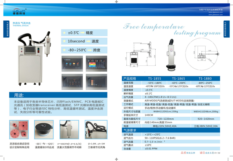 本設(shè)備適用于各類半導(dǎo)體芯片、閃存Flash/EMMC、PCB電路板IC光通訊(如收發(fā)器transceiver高低溫測(cè)試、SFP光模塊高低溫測(cè)試等)、電子行業(yè)等進(jìn)行IC特性分析、高低溫循環(huán)測(cè)試、溫度沖擊測(cè)試、失效分析等可靠性試驗(yàn)。