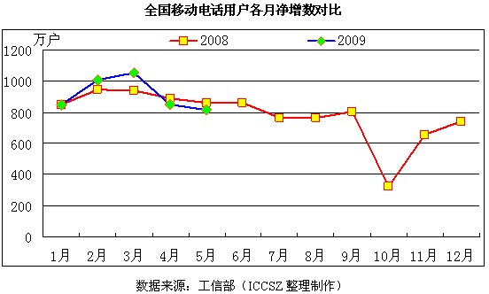 移動(dòng)電話(huà)用戶(hù)方面,2009年1~5月,移動(dòng)電話(huà)用戶(hù)增加4571.9萬(wàn)戶(hù),用戶(hù)總量達(dá)6.87億戶(hù),其中,在09年的前三個(gè)月,移動(dòng)用戶(hù)增長(zhǎng)速度不斷加快,四月和五月的用戶(hù)增長(zhǎng)速度明顯放緩,五月份的凈增量降至814.7萬(wàn)戶(hù),是09年增長(zhǎng)最慢的月份。從09年前五個(gè)月的表現(xiàn)來(lái)看,移動(dòng)用戶(hù)增長(zhǎng)快的月份,固話(huà)用戶(hù)的流失量也有所增長(zhǎng),這證明了移動(dòng)通信與固話(huà)通信明顯的替代效應(yīng)。