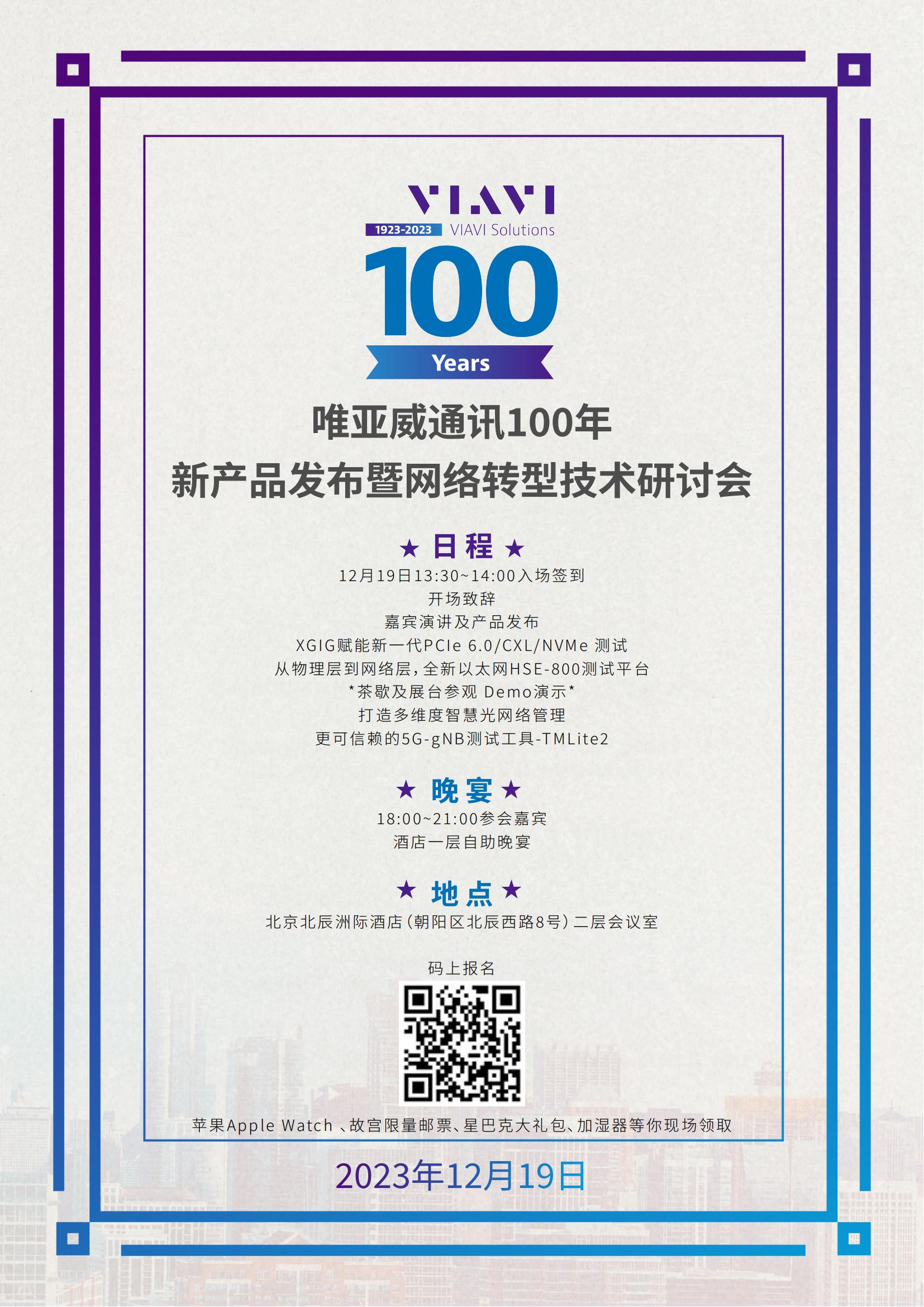 值此100周年之際,我們誠摯邀請您參加VIAVI 100周年——新產(chǎn)品發(fā)布暨網(wǎng)絡(luò)轉(zhuǎn)型技術(shù)研討會,和我們一起慶祝這一歷史性時刻,共同見證VIAVI新產(chǎn)品亮相以及探討網(wǎng)絡(luò)轉(zhuǎn)型趨勢和技術(shù)發(fā)展藍圖。