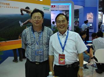 石總與老朋友美商慧視國際有限公司副總裁黃勇林先生在光博會上相遇并合影留念